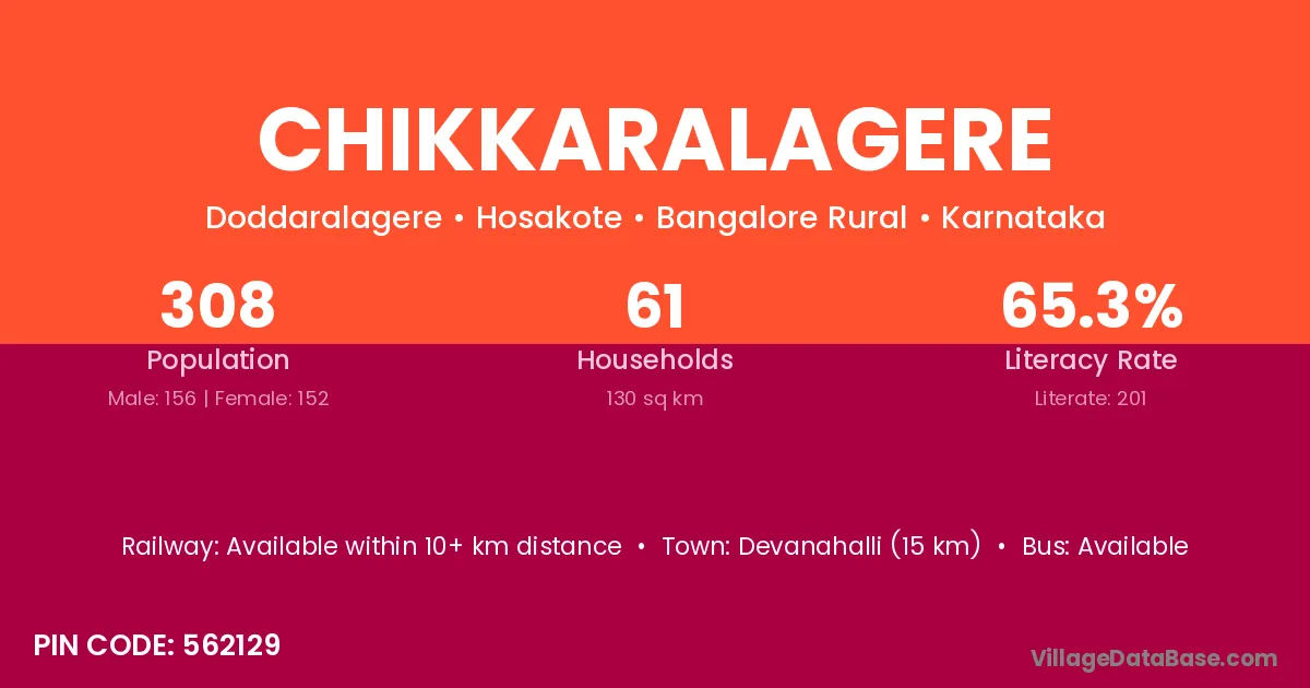 Chikkaralagere village has a total population of 308 people, of which 156 are males and 152 are females.