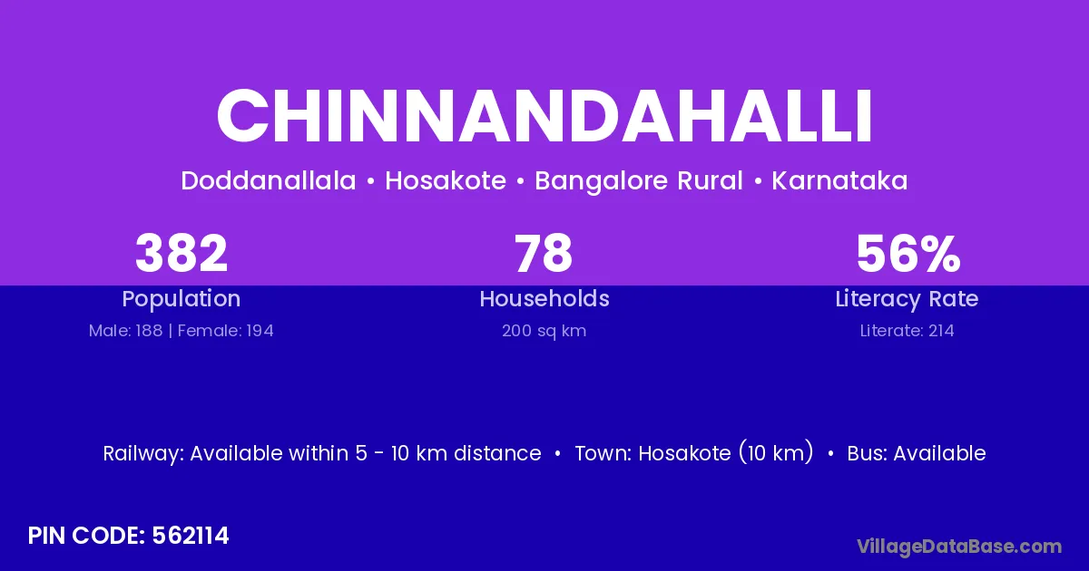 Chinnandahalli village has a total population of 382 people, of which 188 are males and 194 are females.