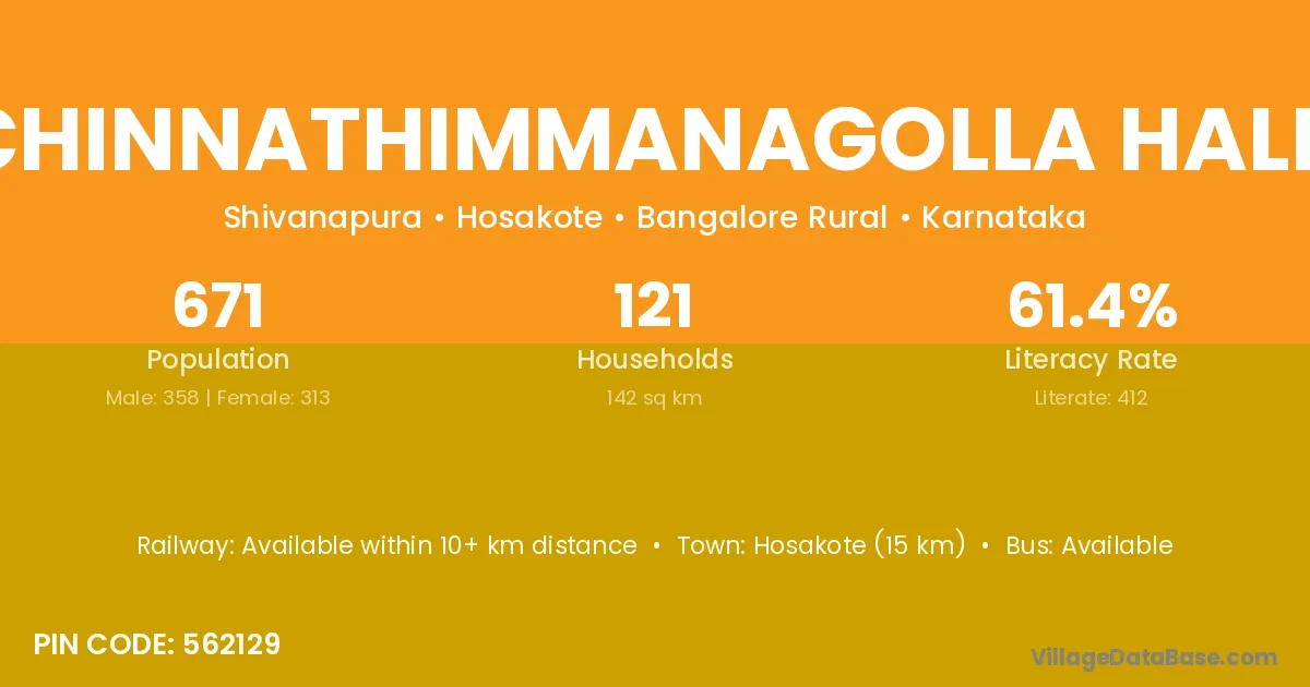 Hosakote (15 km) is the nearest town to Chinnathimmanagolla Halli village for major economic activities and is located approximately 15 km away.
