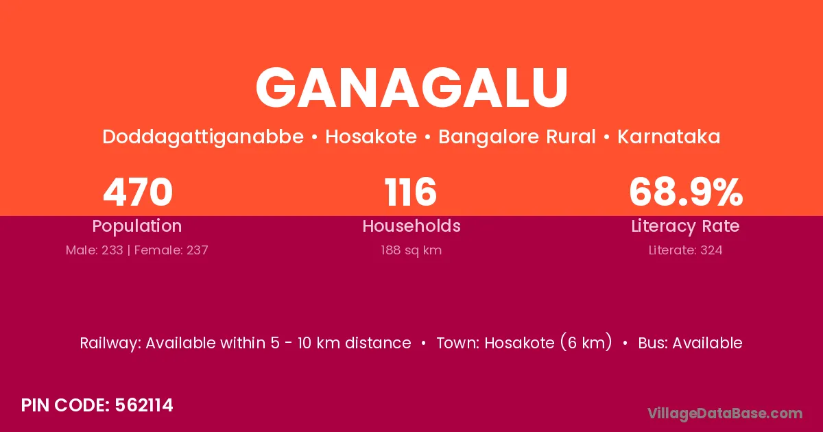 Ganagalu village has a total population of 470 people, of which 233 are males and 237 are females.
