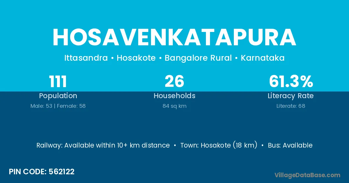 Hosakote (18 km) is the nearest town to Hosavenkatapura village for major economic activities and is located approximately 18 km away.
