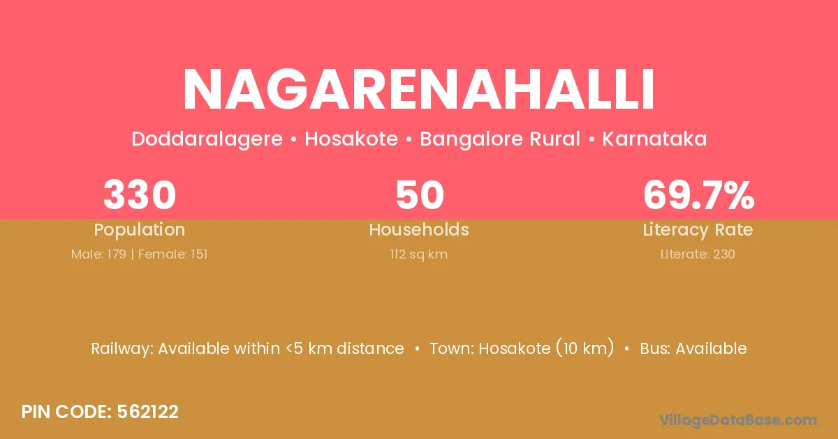 Hosakote (10 km) is the nearest town to Nagarenahalli village for major economic activities and is located approximately 10 km away.