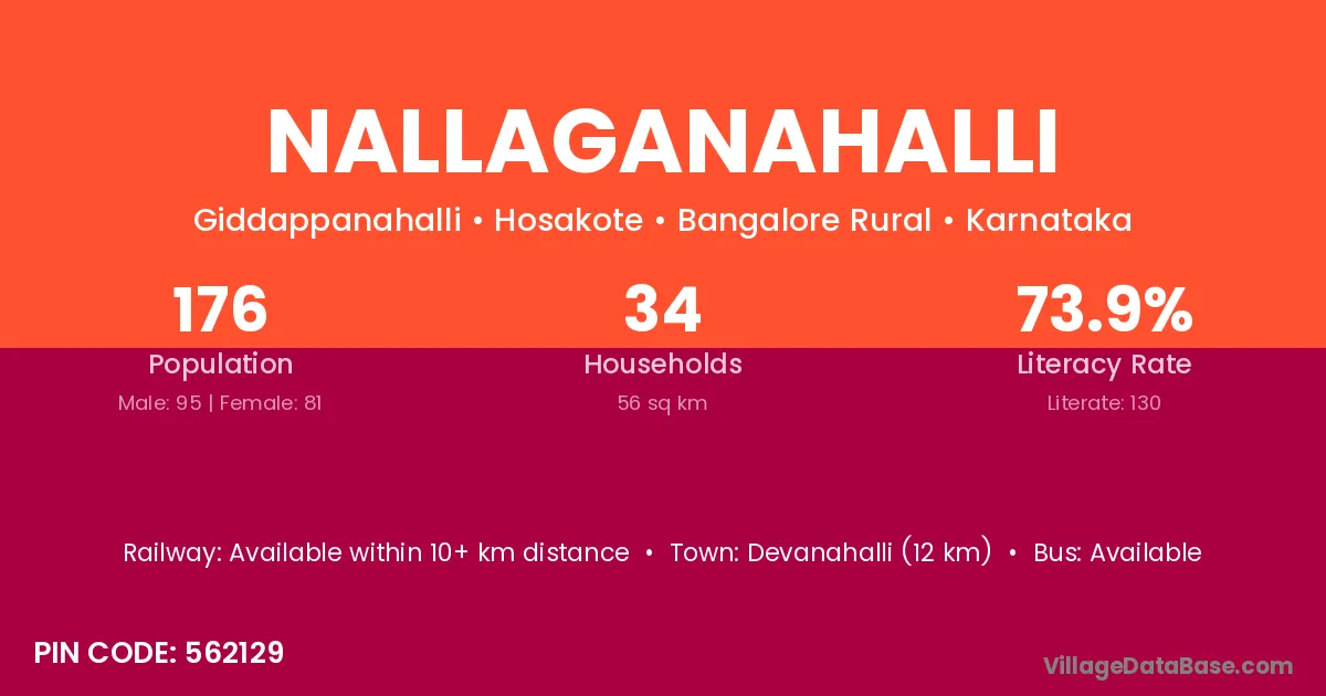 Devanahalli (12 km) is the nearest town to Nallaganahalli village for major economic activities and is located approximately 12 km away.