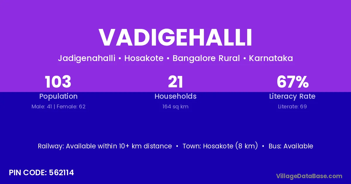 Hosakote (8 km) is the nearest town to Vadigehalli village for major economic activities and is located approximately 8 km away.