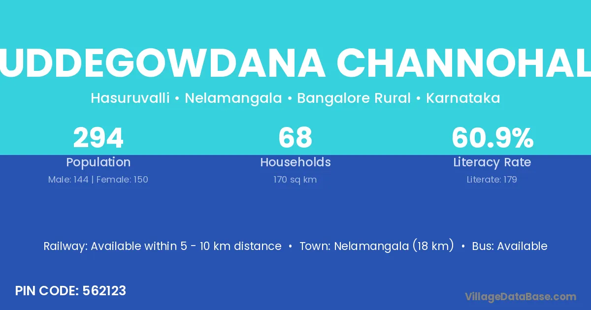 Guddegowdana Channohalli village has a total population of 294 people, of which 144 are males and 150 are females.