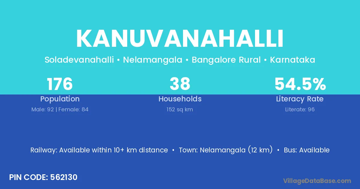 Nelamangala (12 km) is the nearest town to Kanuvanahalli village for major economic activities and is located approximately 12 km away.