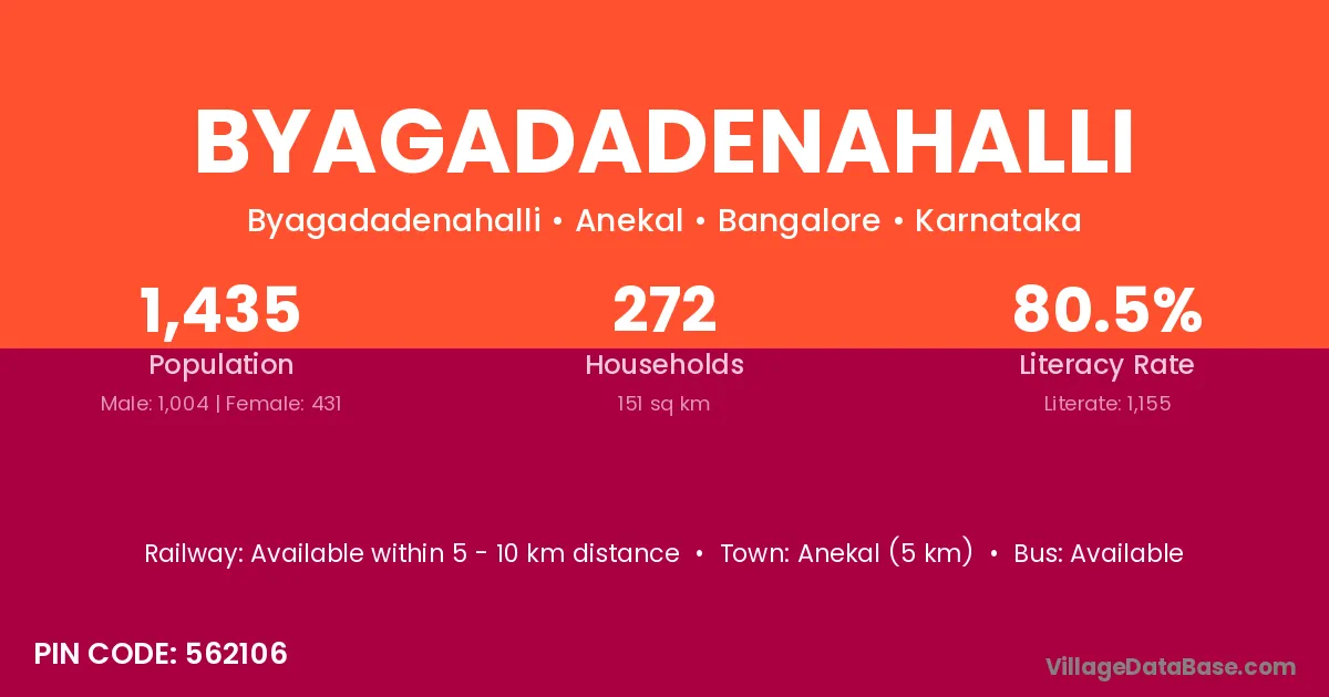 Anekal (5 km) is the nearest town to Byagadadenahalli village for major economic activities and is located approximately 5 km away.