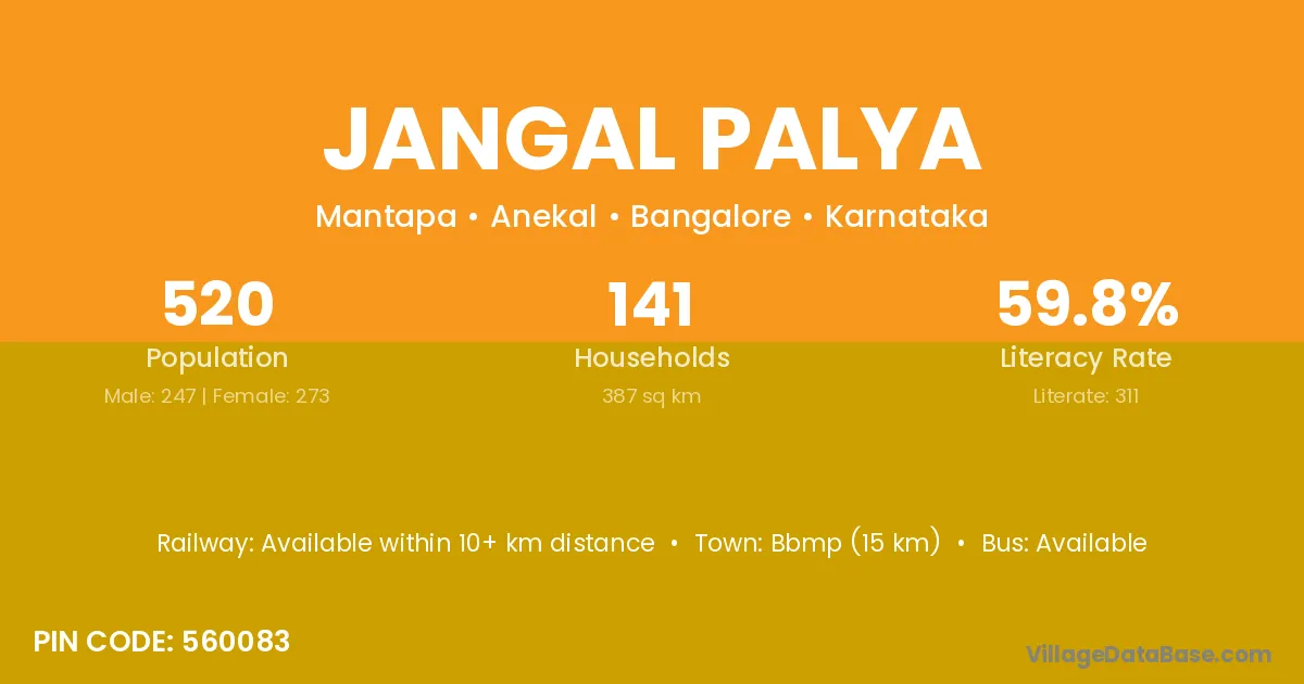 Jangal Palya village has a total population of 520 people, of which 247 are males and 273 are females.