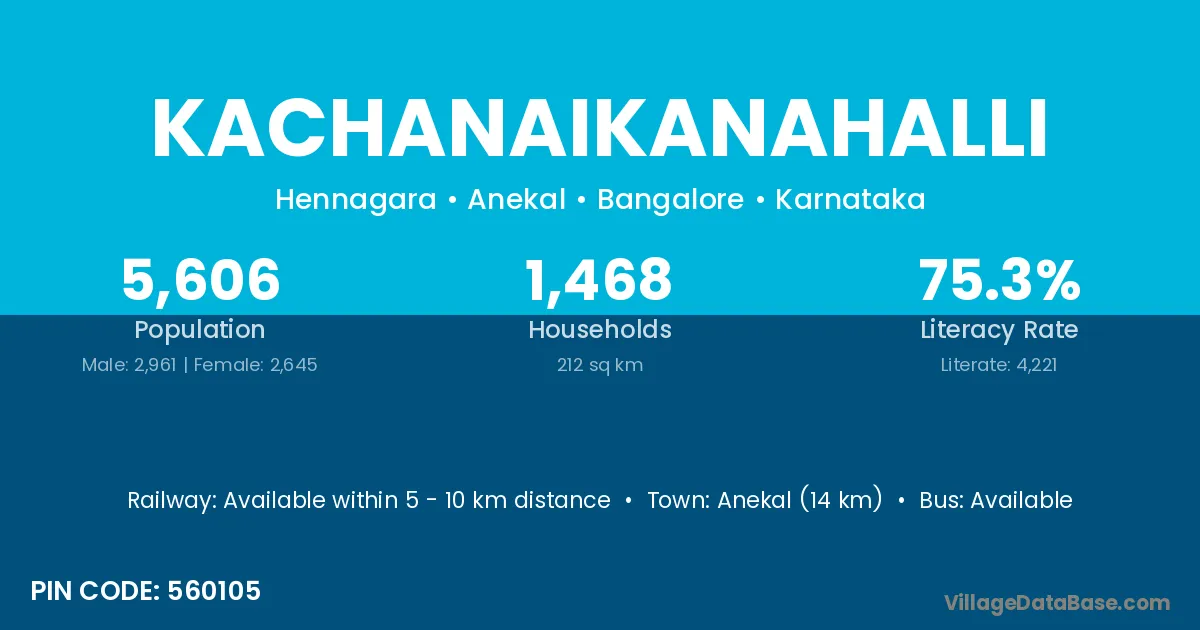 Anekal (14 km) is the nearest town to Kachanaikanahalli village for major economic activities and is located approximately 14 km away.