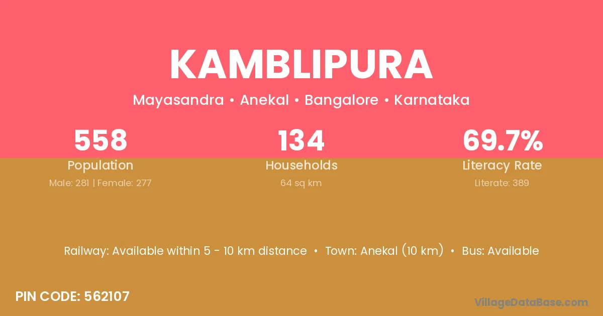 Kamblipura village has a total population of 558 people, of which 281 are males and 277 are females.