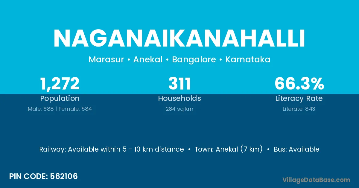 Anekal (7 km) is the nearest town to Naganaikanahalli village for major economic activities and is located approximately 7 km away.