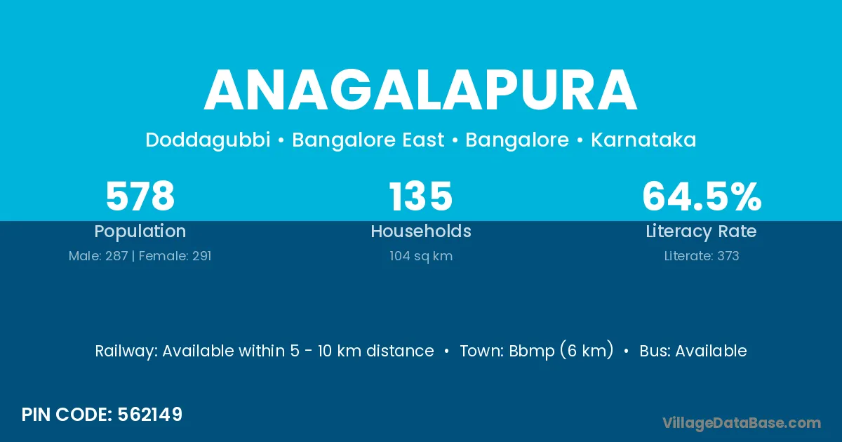 Bbmp (6 km) is the nearest town to Anagalapura village for major economic activities and is located approximately 6 km away.