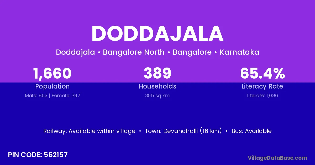 Devanahalli (16 km) is the nearest town to Doddajala village for major economic activities and is located approximately 16 km away.