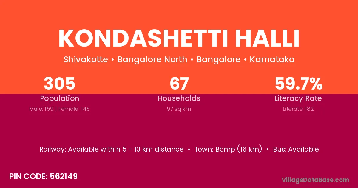 Kondashetti Halli village has a total population of 305 people, of which 159 are males and 146 are females.