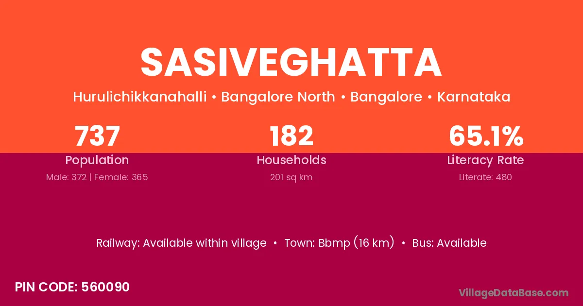Sasiveghatta village has a total population of 737 people, of which 372 are males and 365 are females.