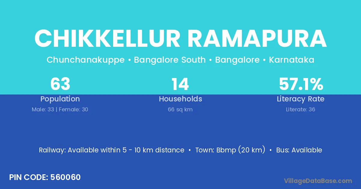 Chikkellur Ramapura village has a total population of 63 people, of which 33 are males and 30 are females.