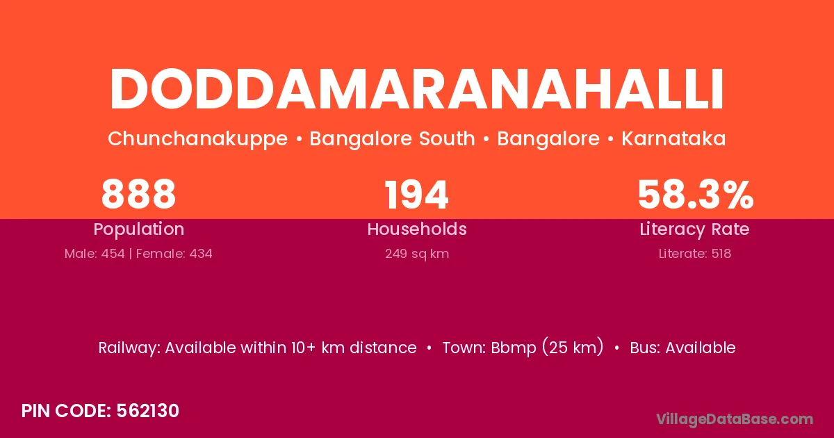 Bbmp (25 km) is the nearest town to Doddamaranahalli village for major economic activities and is located approximately 25 km away.