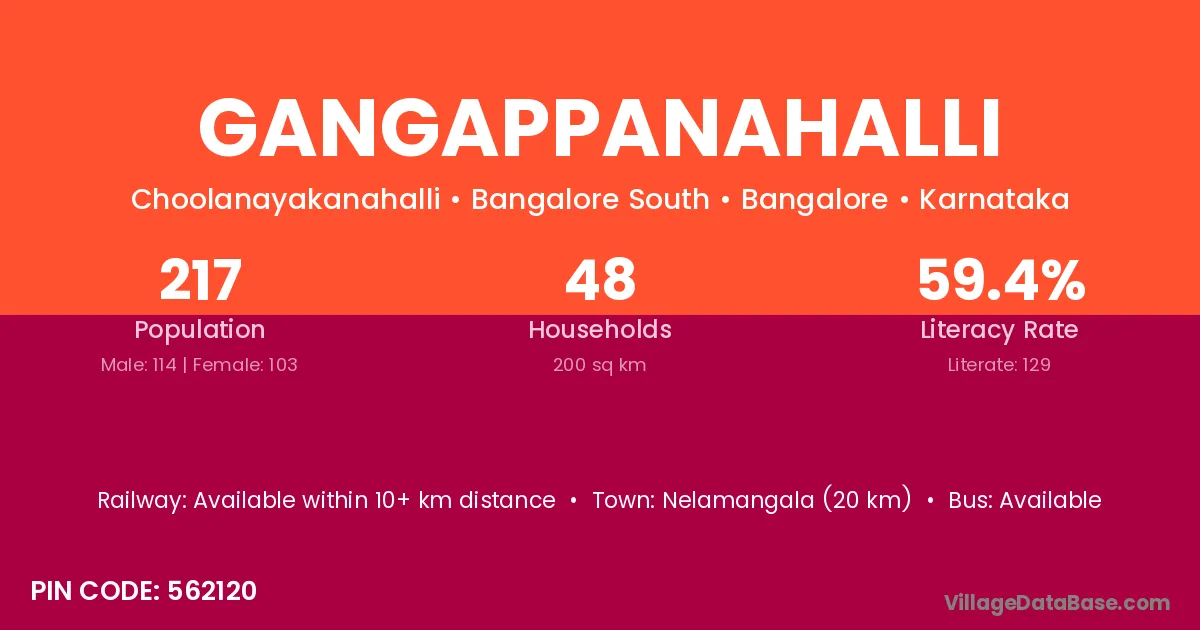 Gangappanahalli village has a total population of 217 people, of which 114 are males and 103 are females.