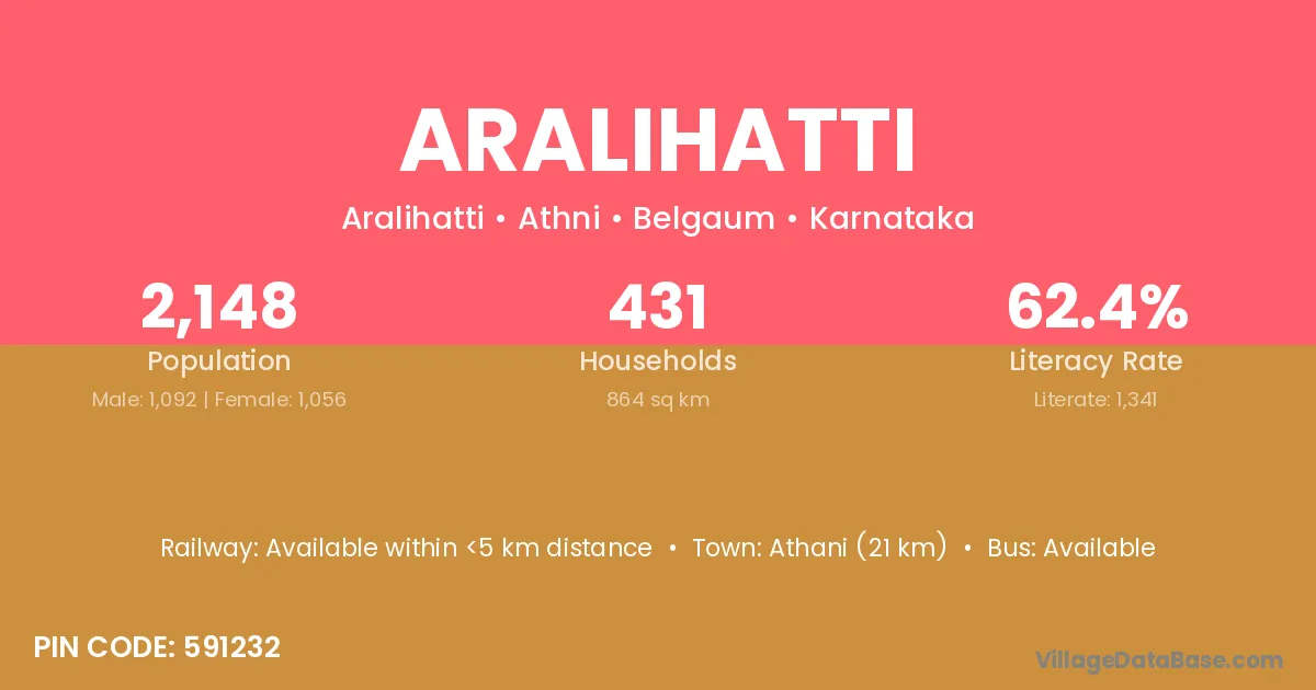 Athani (21 km) is the nearest town to Aralihatti village for major economic activities and is located approximately 21 km away.