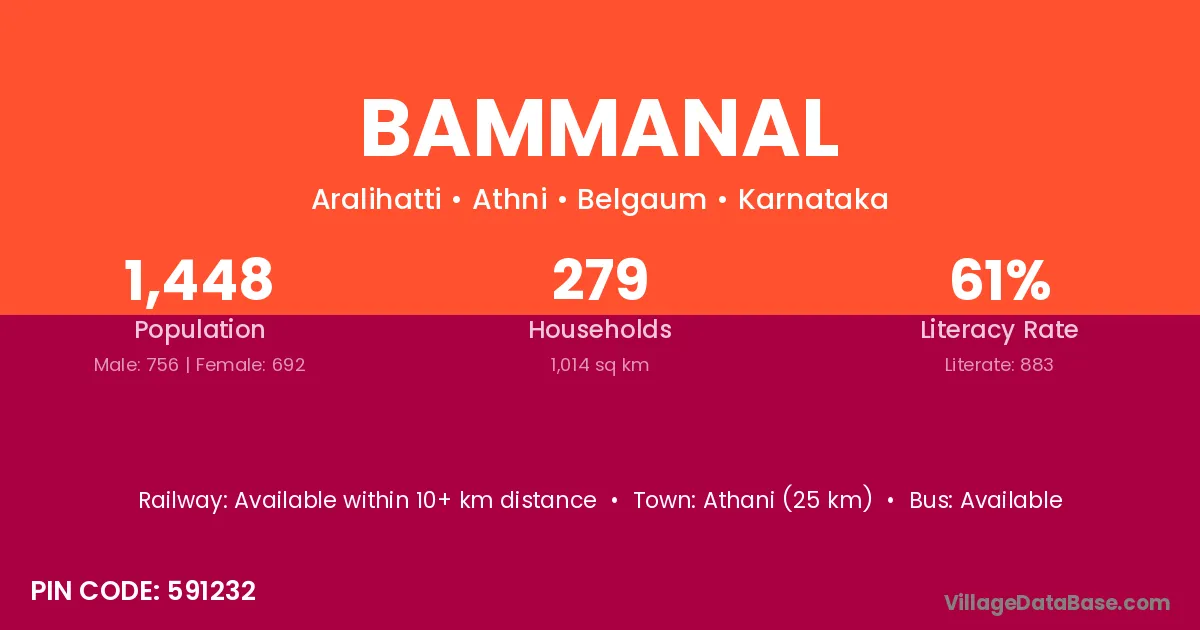 Athani (25 km) is the nearest town to Bammanal village for major economic activities and is located approximately 25 km away.