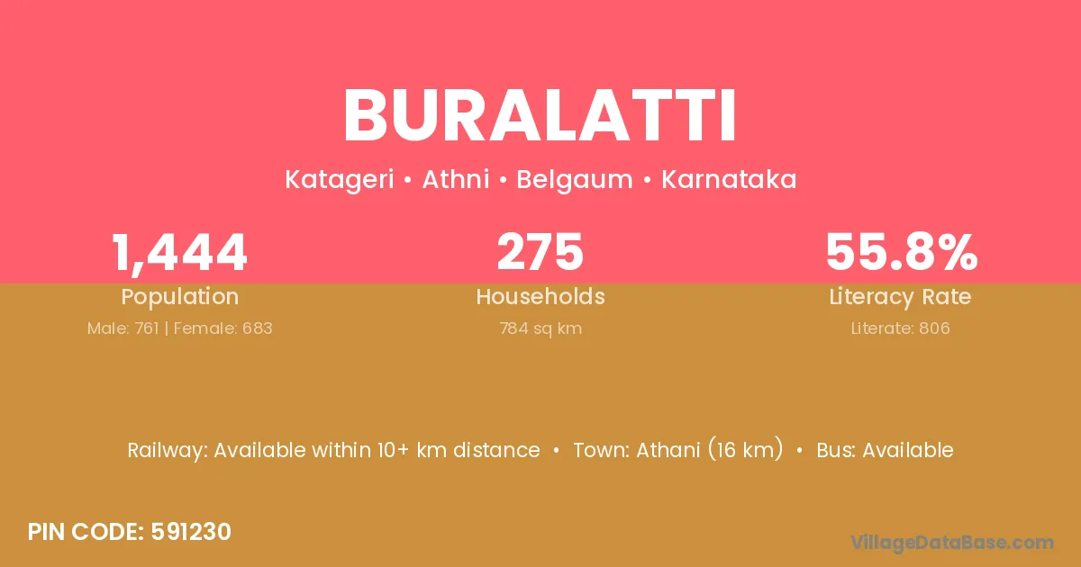 Athani (16 km) is the nearest town to Buralatti village for major economic activities and is located approximately 16 km away.