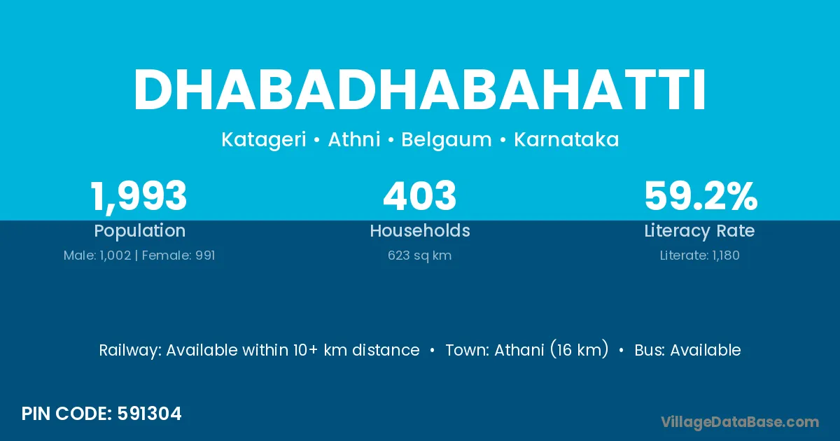 Athani (16 km) is the nearest town to Dhabadhabahatti village for major economic activities and is located approximately 16 km away.