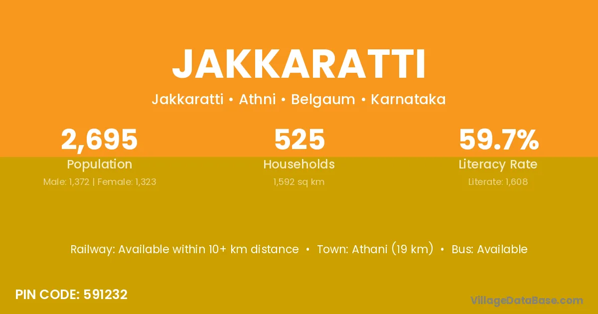 Athani (19 km) is the nearest town to Jakkaratti village for major economic activities and is located approximately 19 km away.