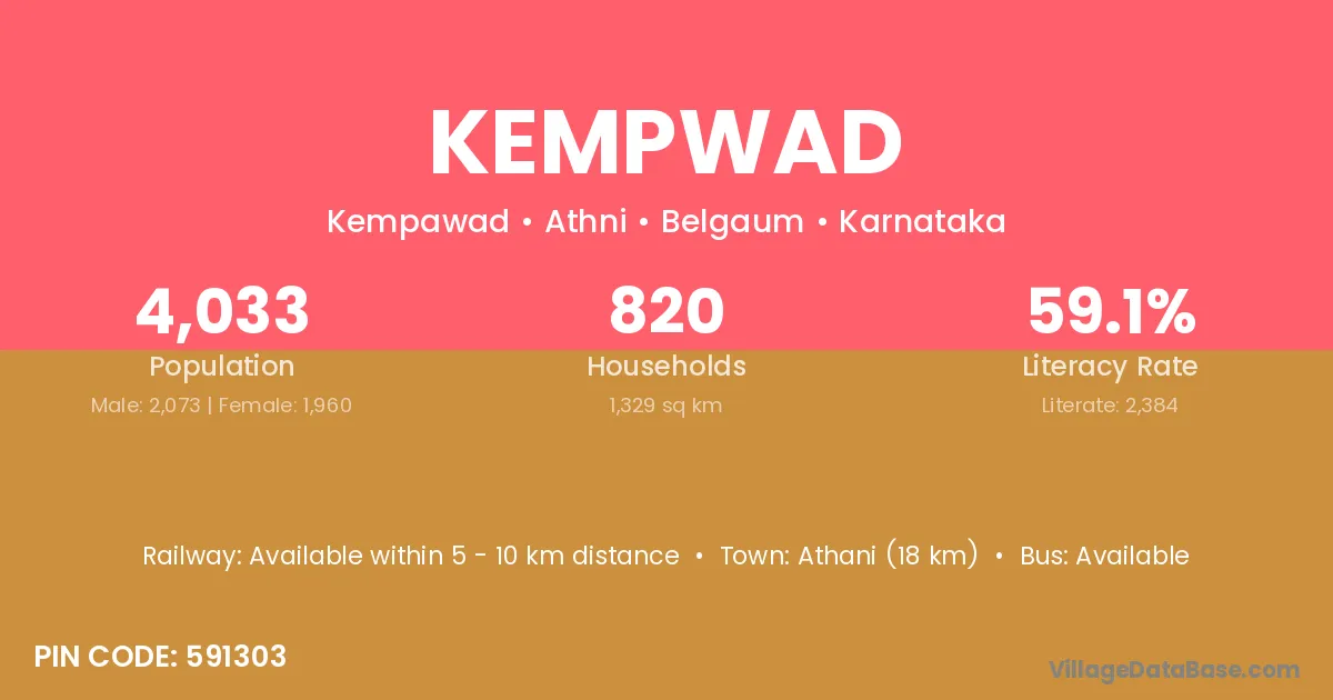 Athani (18 km) is the nearest town to Kempwad village for major economic activities and is located approximately 18 km away.
