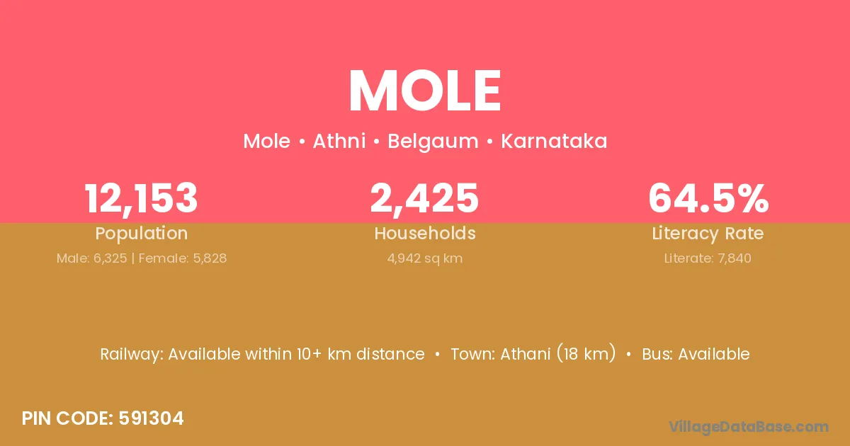 Athani (18 km) is the nearest town to Mole village for major economic activities and is located approximately 18 km away.