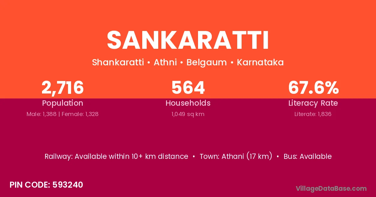 Athani (17 km) is the nearest town to Sankaratti village for major economic activities and is located approximately 17 km away.