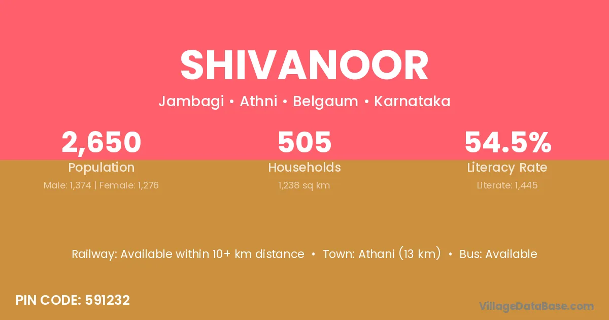 Athani (13 km) is the nearest town to Shivanoor village for major economic activities and is located approximately 13 km away.