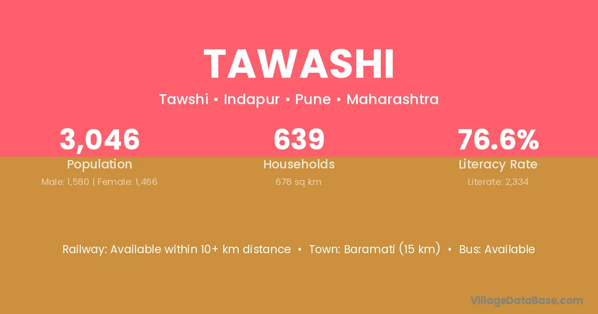 Athani (22 km) is the nearest town to Tawashi village for major economic activities and is located approximately 22 km away.