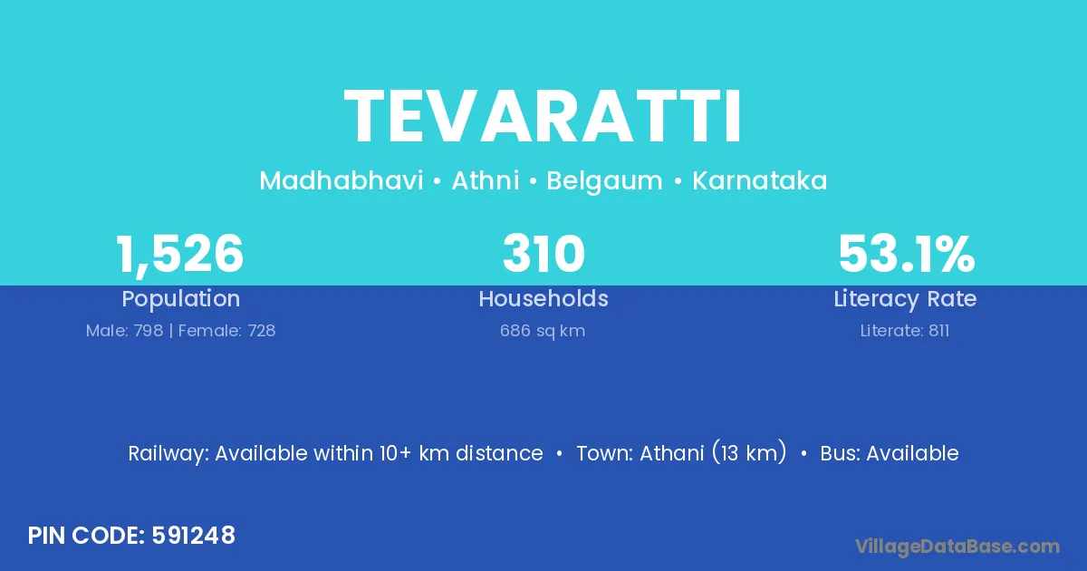 Athani (13 km) is the nearest town to Tevaratti village for major economic activities and is located approximately 13 km away.