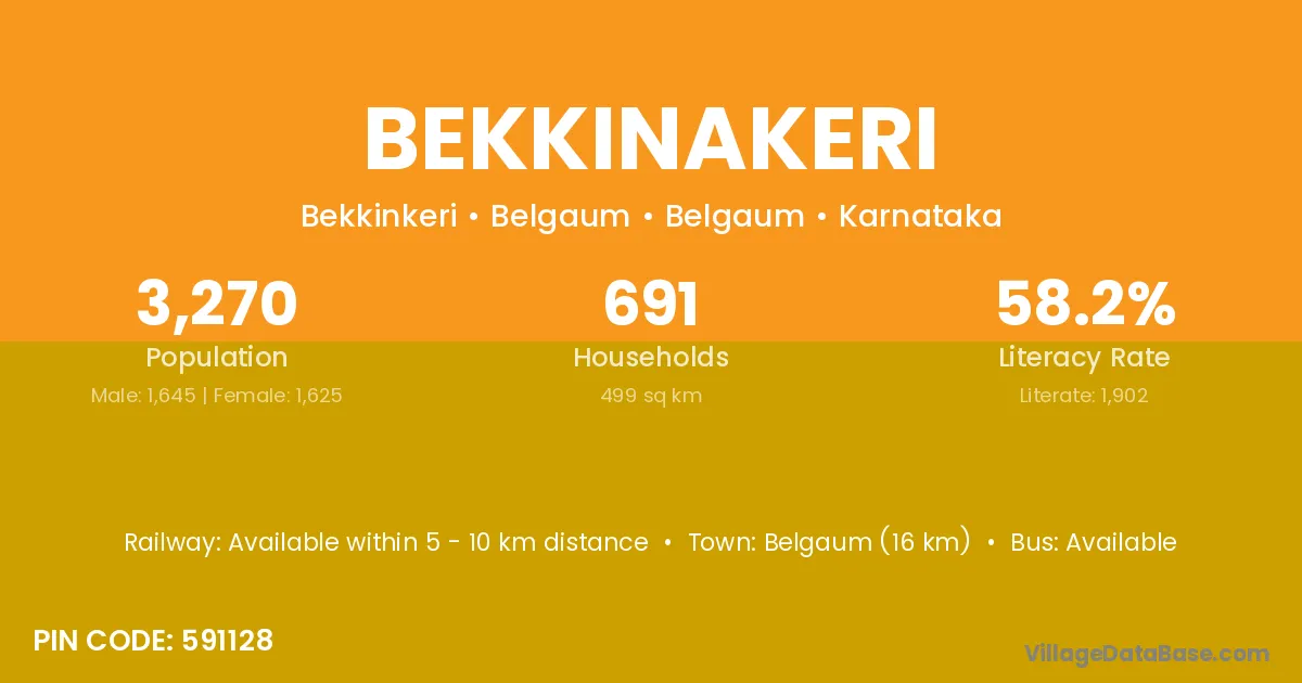 Belgaum (16 km) is the nearest town to Bekkinakeri village for major economic activities and is located approximately 16 km away.