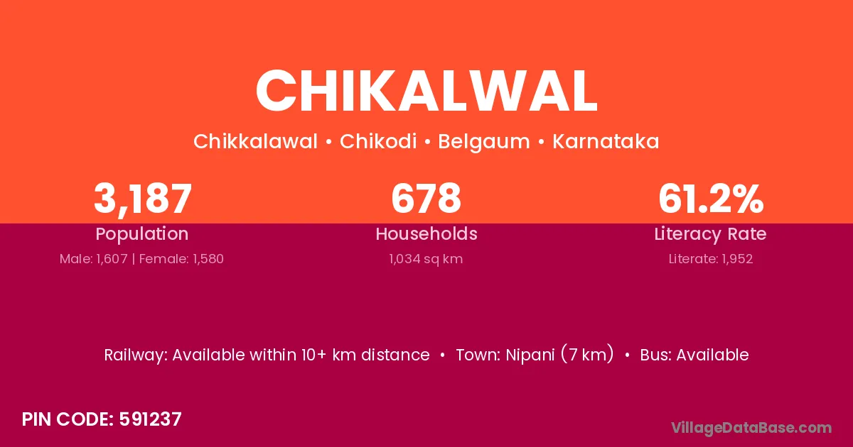 Nipani (7 km) is the nearest town to Chikalwal village for major economic activities and is located approximately 7 km away.