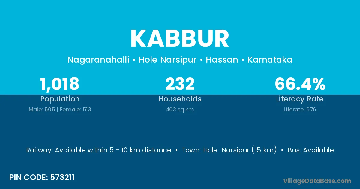 The literacy rate of Kabbur village is 54.97%. Male literacy stands at 62.02% and female literacy at 47.74%.