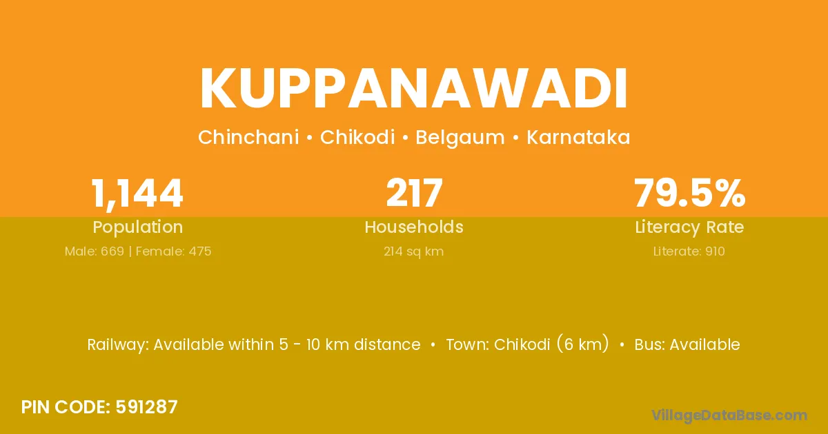 Chikodi (6 km) is the nearest town to Kuppanawadi village for major economic activities and is located approximately 6 km away.