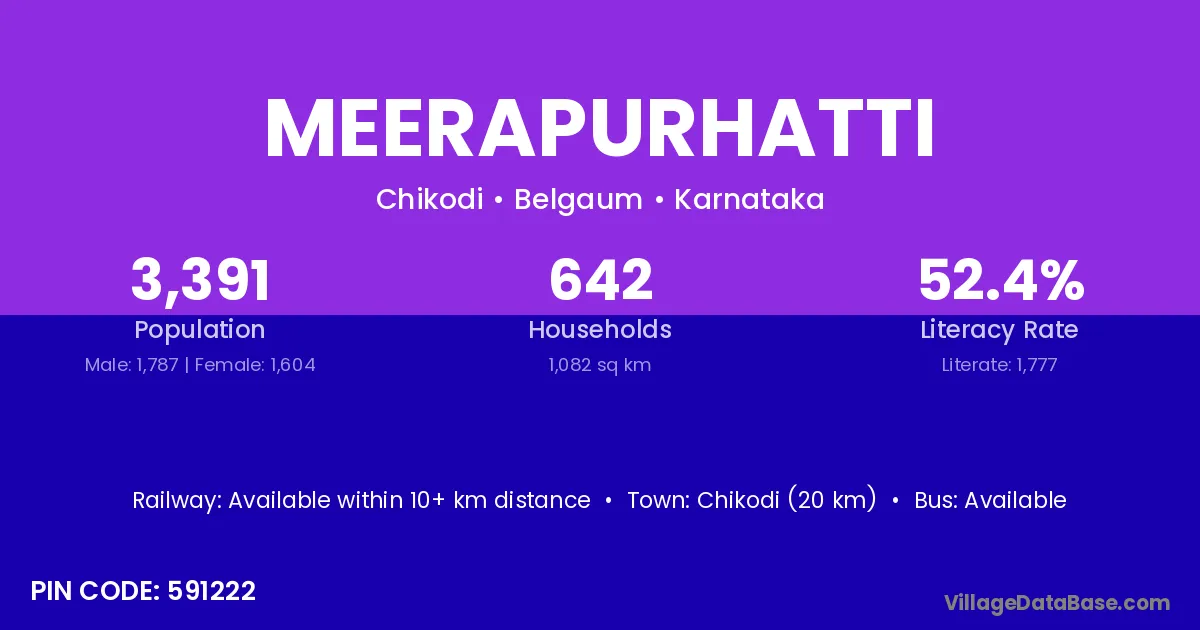 Chikodi (20 km) is the nearest town to Meerapurhatti village for major economic activities and is located approximately 20 km away.