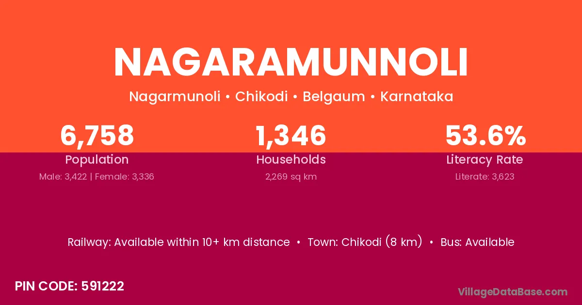 Chikodi (8 km) is the nearest town to Nagaramunnoli village for major economic activities and is located approximately 8 km away.