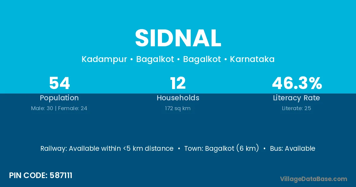 Nipani (12 km) is the nearest town to Sidnal village for major economic activities and is located approximately 12 km away.