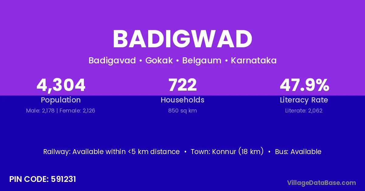 Konnur (18 km) is the nearest town to Badigwad village for major economic activities and is located approximately 18 km away.