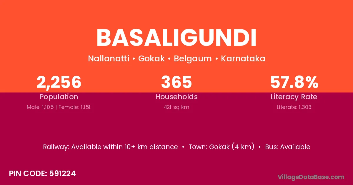 Gokak (4 km) is the nearest town to Basaligundi village for major economic activities and is located approximately 4 km away.