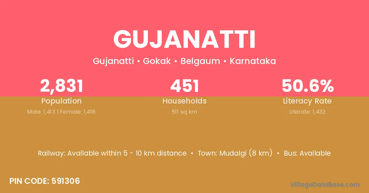 Gujanatti village has a total population of 2,831 people, of which 1,413 are males and 1,418 are females.