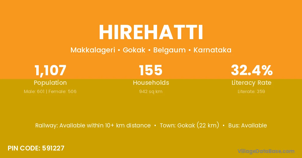 Gokak (22 km) is the nearest town to Hirehatti village for major economic activities and is located approximately 22 km away.
