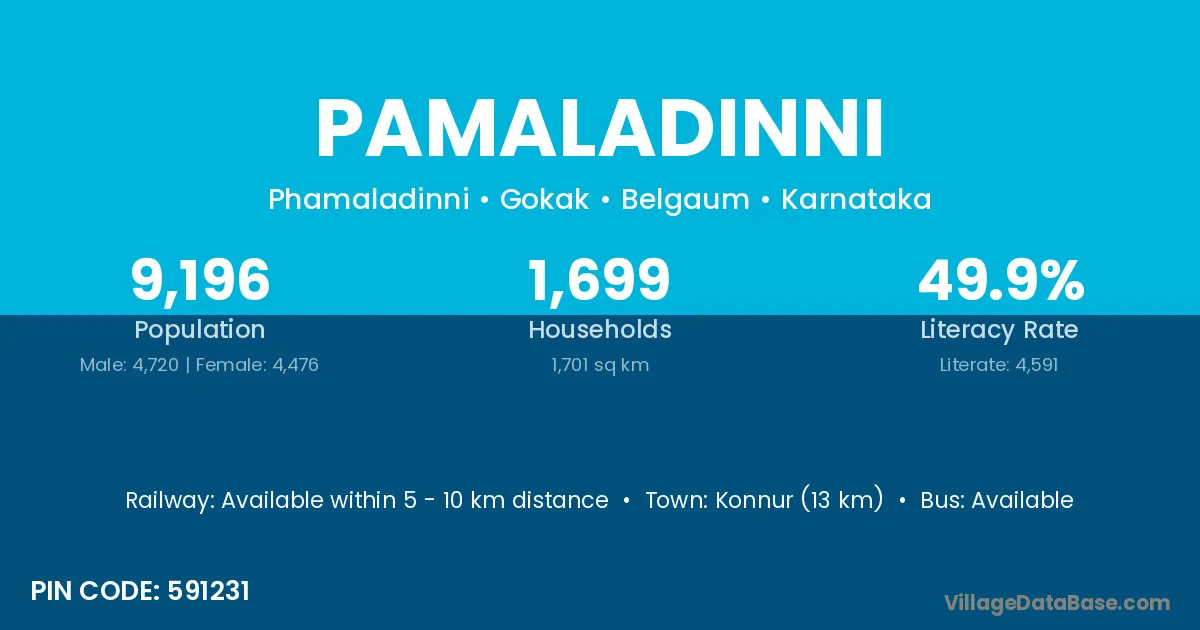 Konnur (13 km) is the nearest town to Pamaladinni village for major economic activities and is located approximately 13 km away.