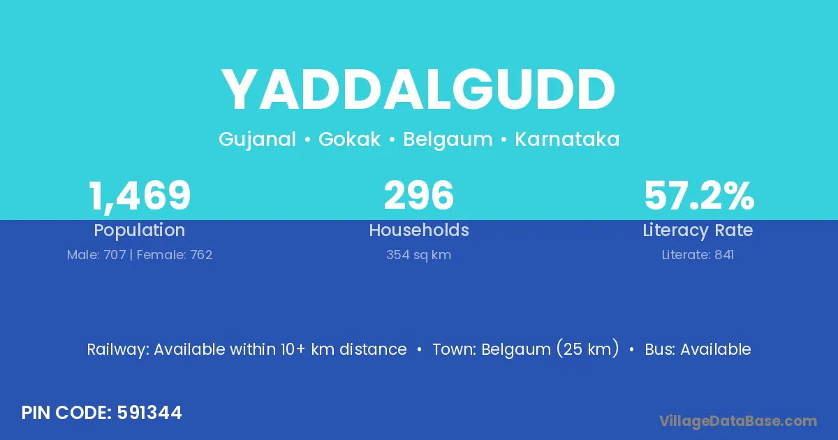 Belgaum (25 km) is the nearest town to Yaddalgudd village for major economic activities and is located approximately 25 km away.