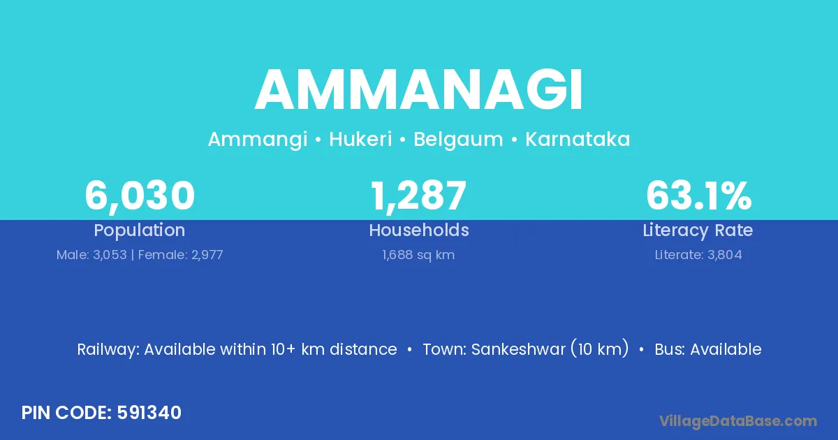 Ammanagi village has a total population of 6,030 people, of which 3,053 are males and 2,977 are females.