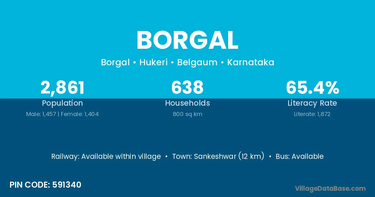 Sankeshwar (12 km) is the nearest town to Borgal village for major economic activities and is located approximately 12 km away.