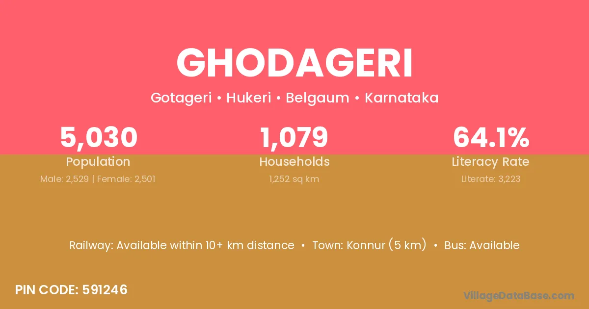 Konnur (5 km) is the nearest town to Ghodageri village for major economic activities and is located approximately 5 km away.