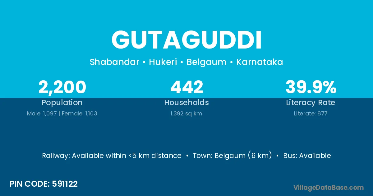 Belgaum (6 km) is the nearest town to Gutaguddi village for major economic activities and is located approximately 6 km away.
